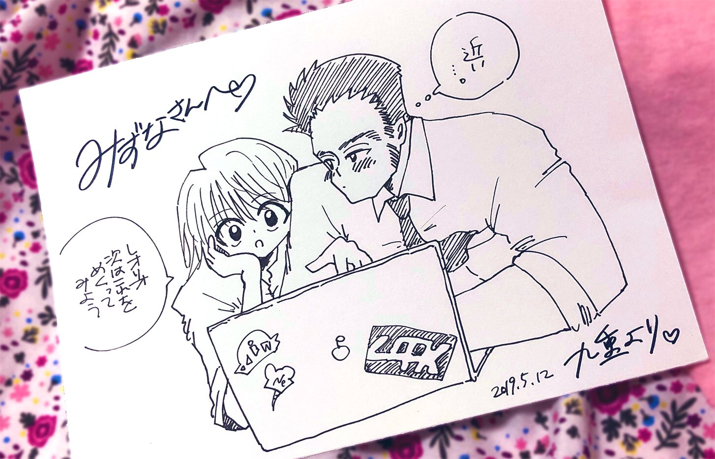 そして左上、ここのえ様のセンス溢れる筆跡で「みずな」と描いて頂きました、めちゃくちゃオシャレな名前に見えます…!!